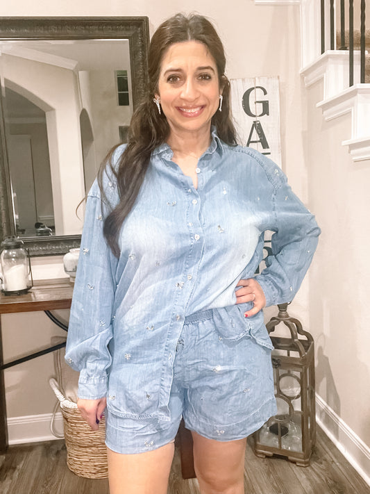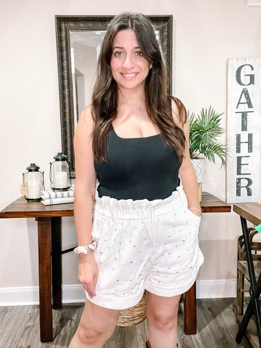 White Paper Bag Rhinestone Shorts