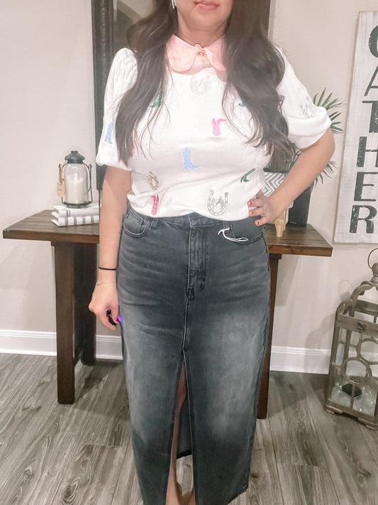 SaleBlack Denim Skirt