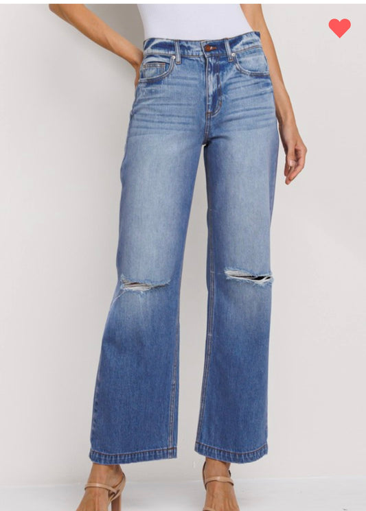 90s Wide Leg Knee Ripped Denim